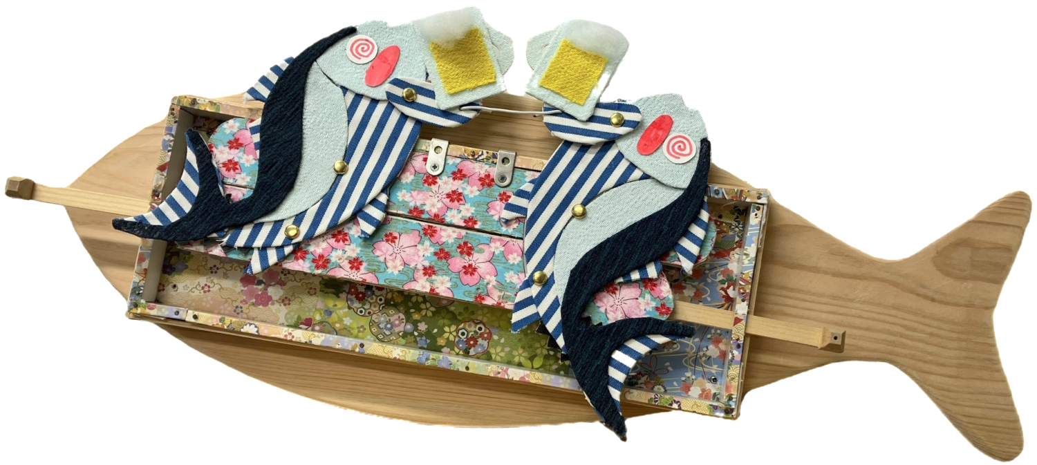 静岡県焼津市の焼津駅前通り商店街で行っている「カツオアート」の中土佐町バージョン。大野見の四万十ヒノキのカツオ型板に、中土佐町の子どもたち&町民が描いた個性あふれる作品が勢ぞろい!